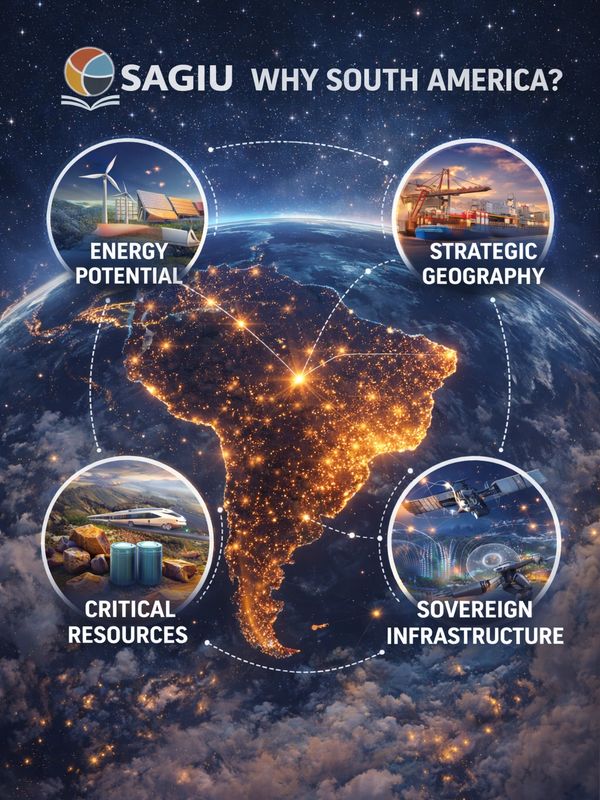 As the world races toward decarbonization, SAGIU positions South and Latin America as the world’s clean-energy and green-manufacturing hub—turning natural wealth into refined, tokenized, and export-ready value chains. This is the continent’s moment to shift from resource exporter to technology producer, anchoring the global green transition within its own borders.